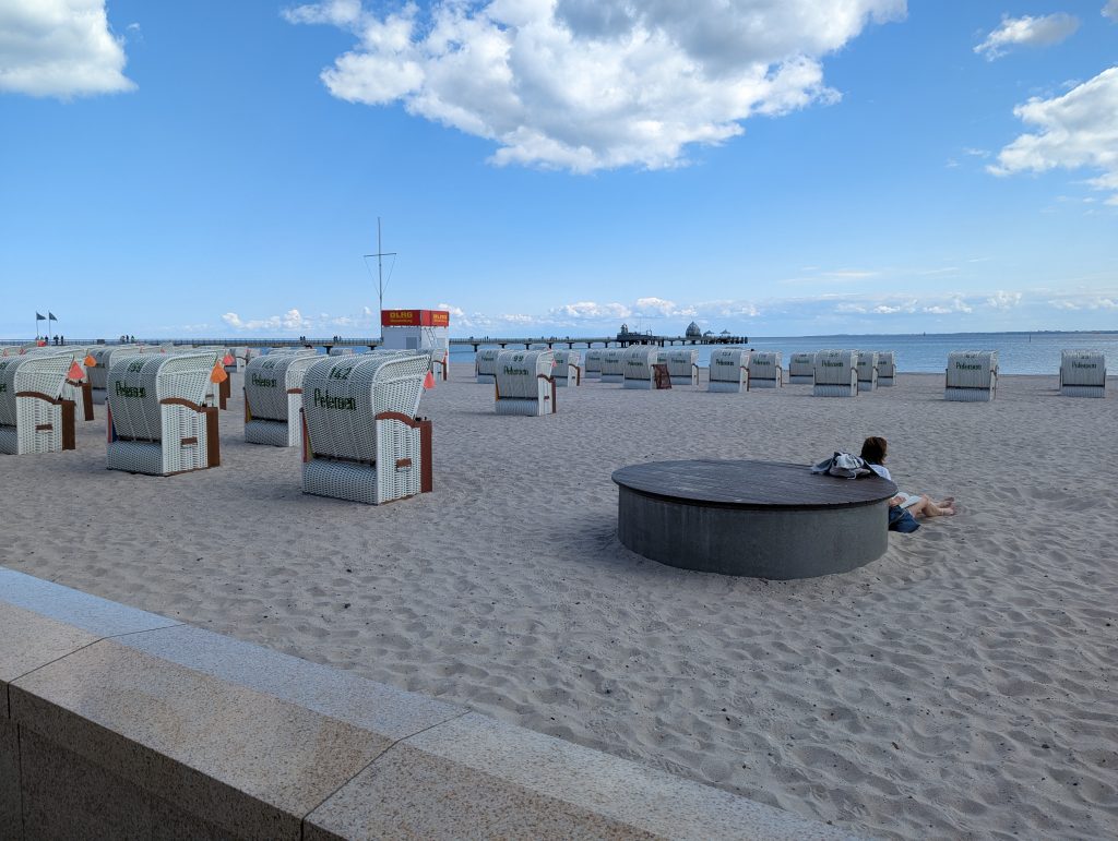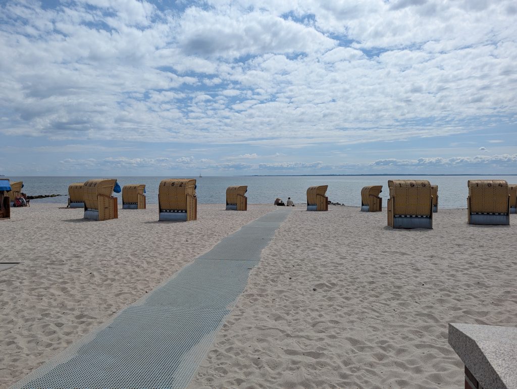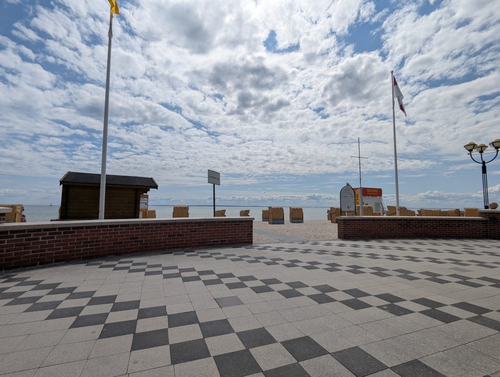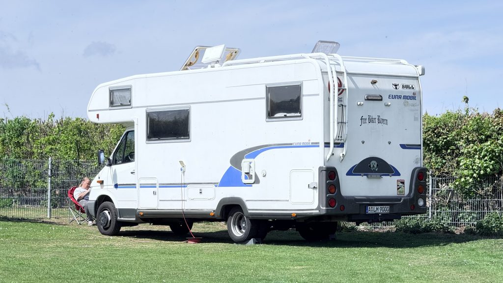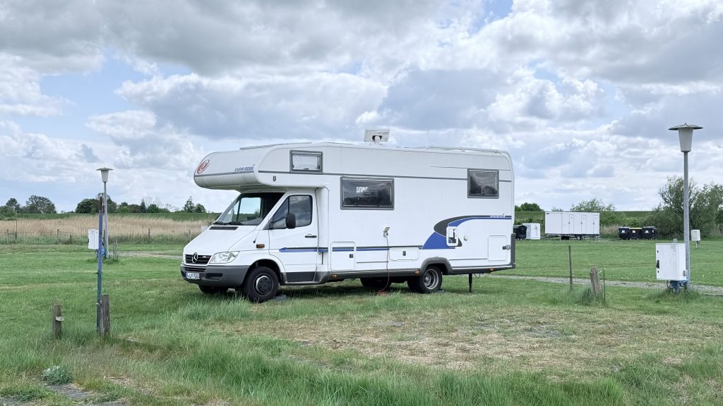 Inzwi­schen hat­ten wir rea­li­siert, dass die drit­te Nacht in Fed­der­war­der­siel kei­ne so gute Idee war, denn uns lief die Zeit davon. So haben wir hin und her über­legt, in Oster­m­a­de zu ver­kür­zen oder in Grömitz nur eine Nacht zu ste­hen. Wir haben uns für letz­te­res ent­schie­den und sind dann nach kur­zer Fahrt im neu­en Wohn­mo­bil­park in Grömitz ange­kom­men. 19 € pro Nacht zzgl. Was­ser, Strom, etc.