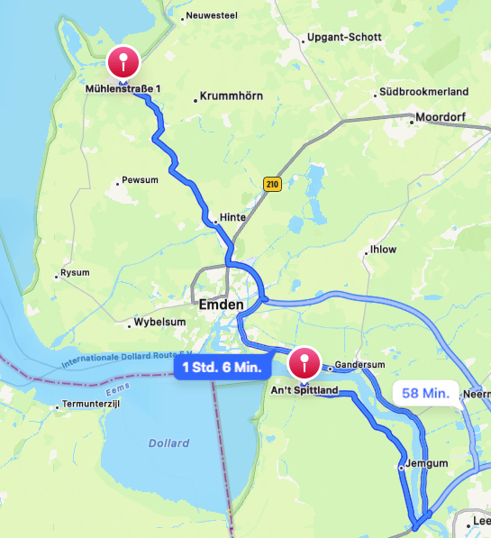 Ditz­um ist qua­si leb­los, aber der Stell­platz Topp! Ost­fries­land ist immer wie­der schön, aber Grömitz (jaja, ist nicht mehr Fries­land) kann man getrost aus­las­sen. Zum Rad­fah­ren ist die Gegend pri­ma geeig­net, wenn man mit dem Wind Glück hat (oder ein E‑Bike mit vol­lem Akku 😆).