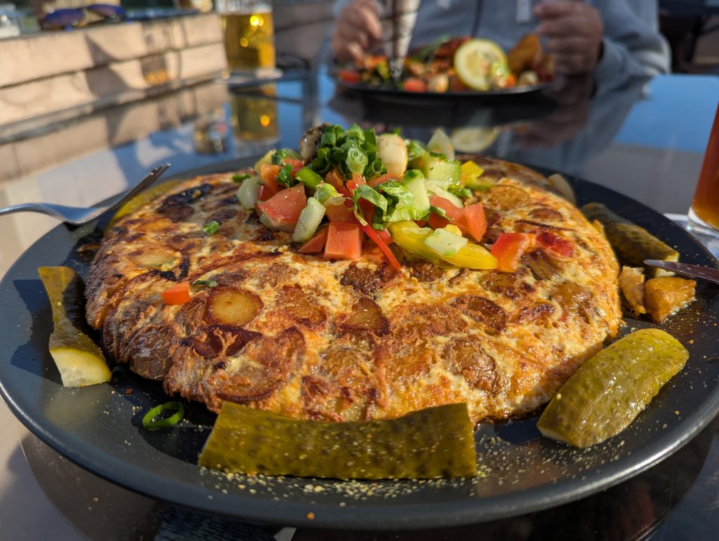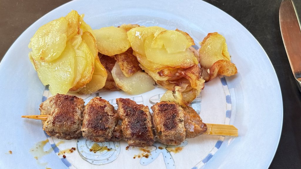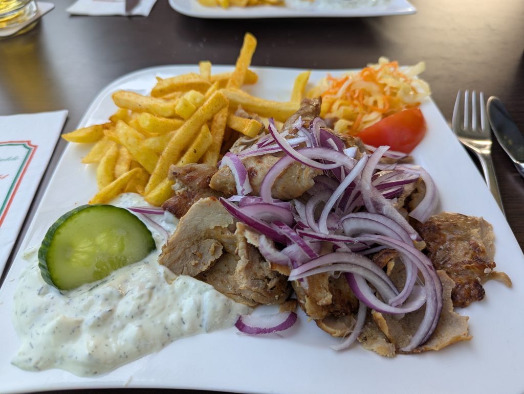 Abends sind wir noch­mal ins Klin­thuss gegan­gen. Nach der Hälf­te haben wir die Tel­ler getauscht. Petra hat­te erst ein Ome­lette und ich drei­er­lei Fleisch mit Gedöns – spä­ter dann andersrum. 😎