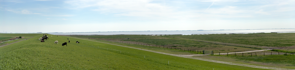 Am Nach­mit­tag haben wir unse­re Räder geschnappt und sind die 18 km über Ben­ser­siel nach Neu­har­lin­ger­siel gera­delt. Bis Ben­ser­siel geht die Stre­cke im Bin­nen­land am Deich ent­lang, aber von Ben­ser­siel bis Neu­har­lin­ger­siel führt der offi­zi­el­le Rad­weg direkt an der Nord­see ent­lang. Dort gibt es den soge­nann­ten Pla­ne­ten­pfad, auf dem die Ent­fer­nun­gen zwi­schen den Pla­ne­ten im Maß­stab 1:628 Mio mit Schau­ta­feln visua­li­siert wird. Fotos des Pla­ne­ten­pfads haben wir kei­ne gemacht, da wir schon recht spät dran waren und ja auch vor Son­nen­un­ter­gang wie­der zurück sein muss­ten. Aber vom Weg und Neu­har­lin­ger­siel gibt es welche: