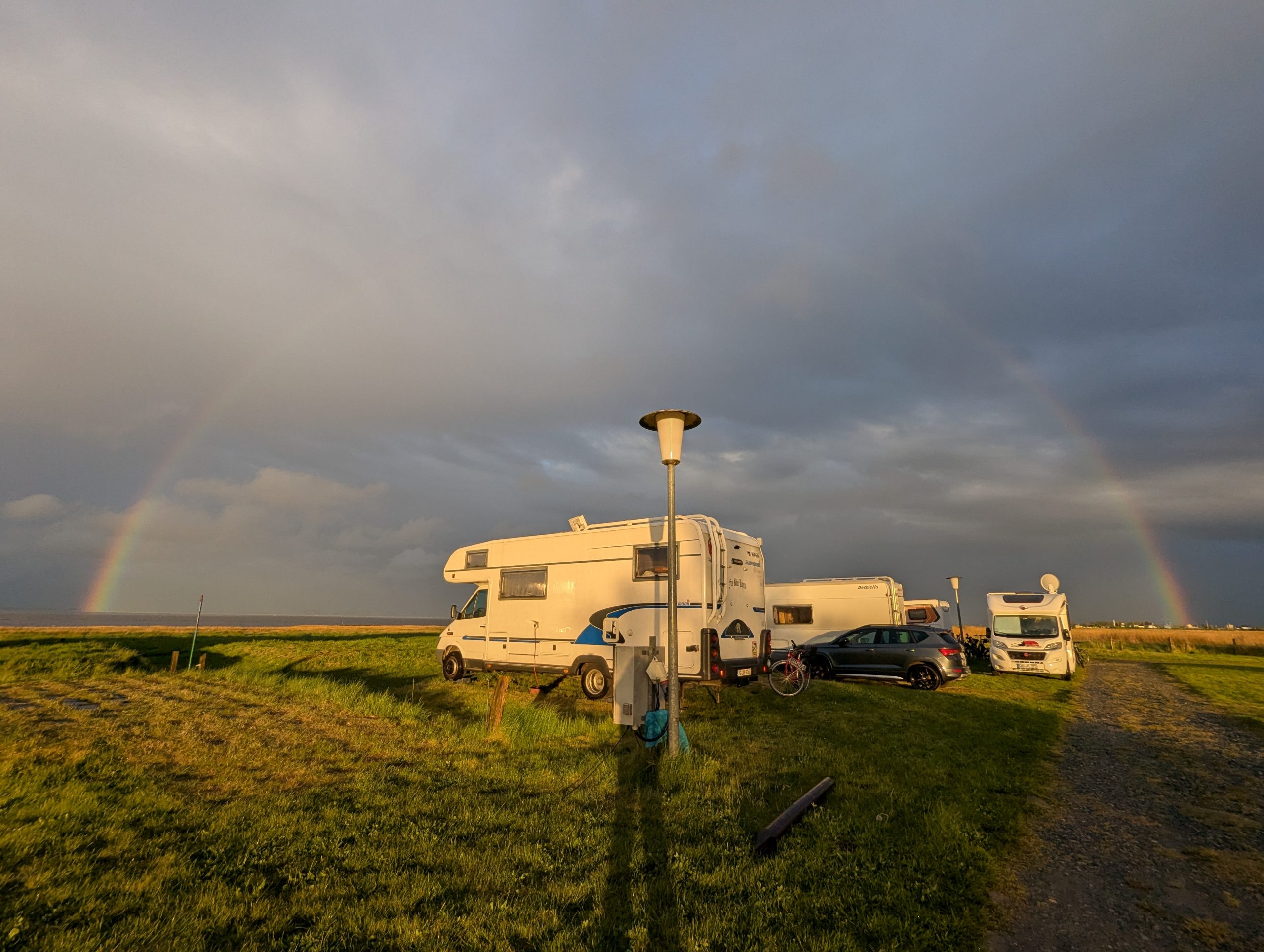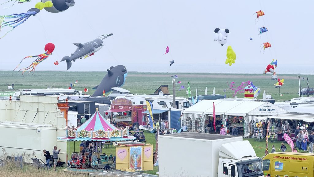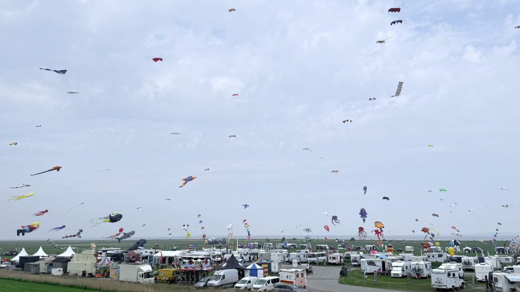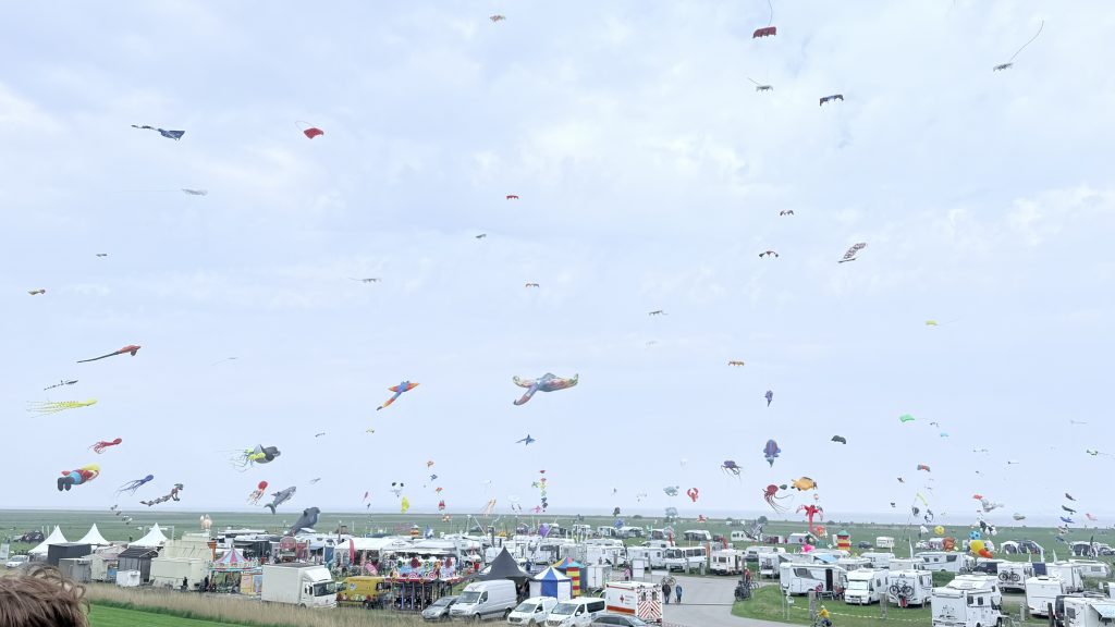 In Dor­nu­mer­siel war vom 1. – 4. Mai Dra­chen­fest. 🪁 Zum Glück haben wir noch einen Platz für unser Wohn­mo­bil bekom­men, es wur­de dann recht schnell voll. Aber das Schö­ne am Wohn­mo­bil­ur­laub ist halt, dass man – wenn man erst­mal auf einem Stell­platz steht, auch jeder­zeit kür­zer oder län­ger blei­ben kann. Von Vor­teil ist natür­lich, wenn man nicht zu knapp kal­ku­liert und erst um 18 Uhr ankommt. Lie­ber kür­ze­re Stück­chen fah­ren, und dafür entspannter.
