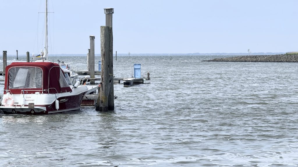 Nach 8 Stun­den Fahrt konn­ten wir um kurz nach 17 Uhr unse­ren Stell­platz im Dit­zu­mer Rei­se­mo­bil­ha­fen ein­neh­men. Zwei Näch­te haben wir bei dem freund­li­chen Matro­sen gebucht, kos­tet 20 € pro Nacht zzgl. Strom und Duschen.