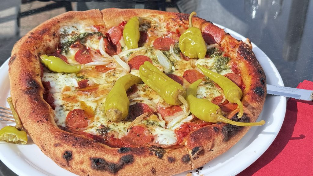 Zum Abend­essen ging es zum Ita­lie­ner „Tuli­pa­no“ gleich neben­an. Das Essen war aus­ge­zeich­net, la fami­glia per­fet­to, nur unse­ren Dackel muss­ten wir „ver­ste­cken“, da gab’s wohl vor kur­zem eine Bei­ße­rei und die Wir­tin war etwas besorgt…
