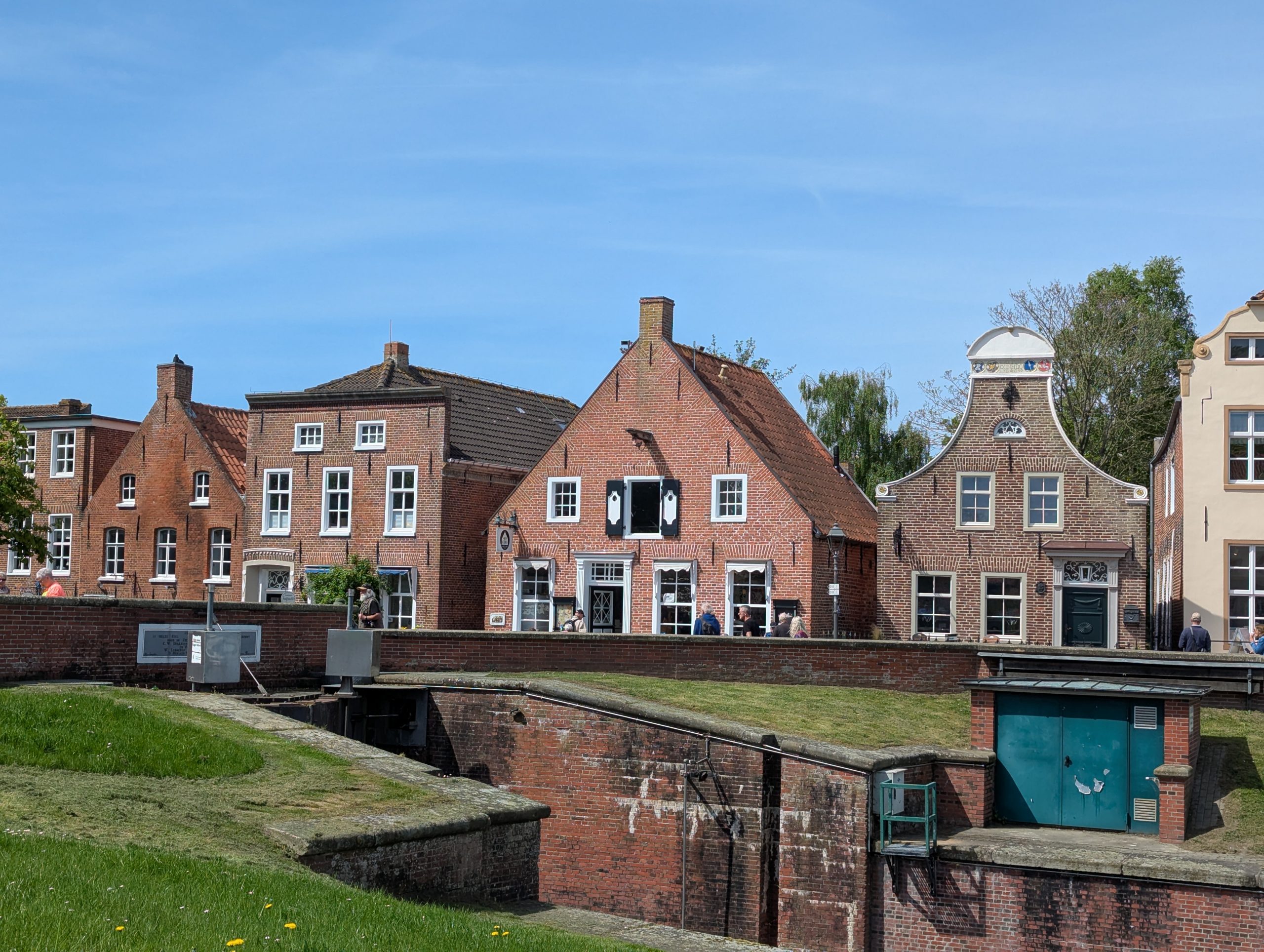 Nach dem Früh­stück mit mit­ge­brach­tem Brot, Mar­me­la­de, Wurst und Käse, haben wir uns den Ort und den Hafen ange­se­hen. In dem klei­nen Café haben wir uns ein Eis gegönnt und ein biss­chen mit der Besit­ze­rin geratscht. Ditz­um ist zwar schön, aber ziem­lich ein­sam. Super­markt, Apo­the­ke, etc. gibt’s erst wie­der im 10 km ent­fern­ten Jemgum. 😳