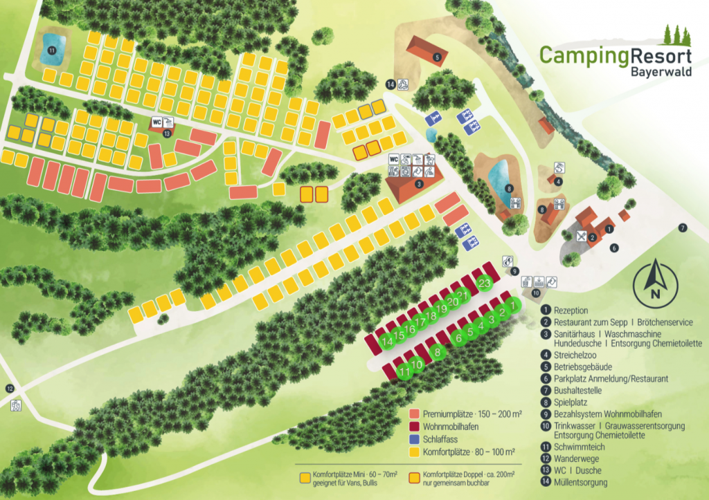 Das Camping Resort Bayerwald in Waldkirchen. Hat Strom, WLAN, Waschhaus, Restaurant, …