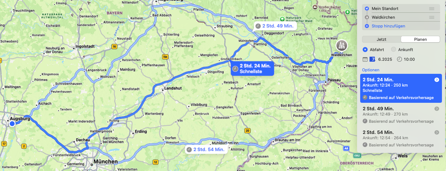Abfahrt ist geplant für morgen früh, Reisezeit etwa 4h. Wobei ich noch überlege, ob ich Landstraße oder Autobahn will. Wird wohl recht voll werden morgen auf der A3 Richtung Süden.