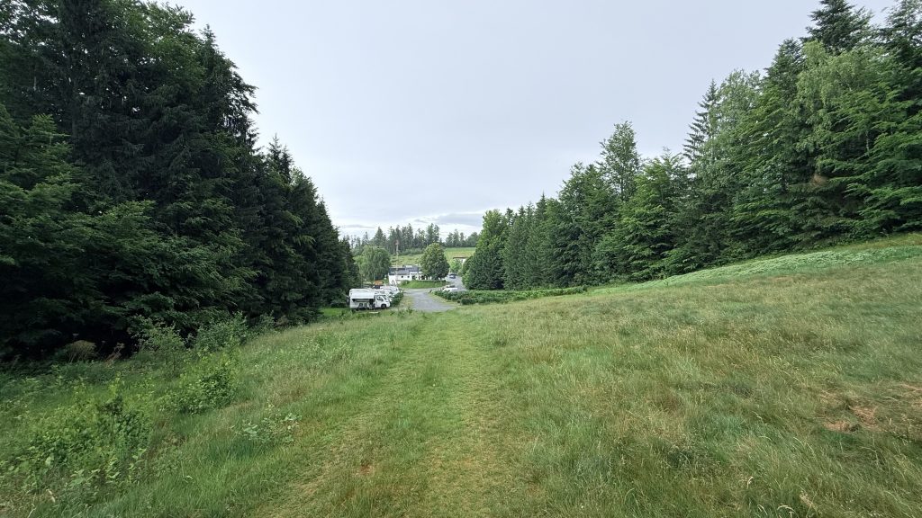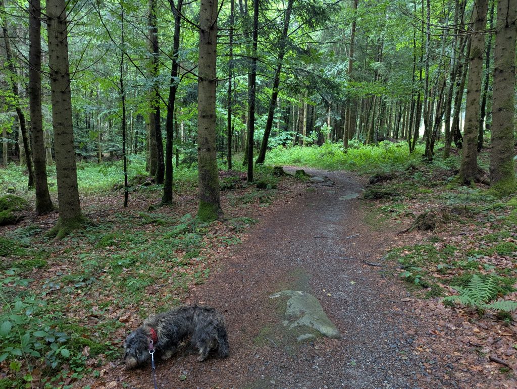 Anschließend sind wir noch eine Runde den Hund lüften gewesen. Hier kann man prima vom Campingplatz aus in den Bayerischen Wald losdackeln. Die haben den Platz einfach in den Wald geballert, bringt wahrscheinlich mehr Geld und weniger Stress als Fichtenholz und Borkenkäfer.