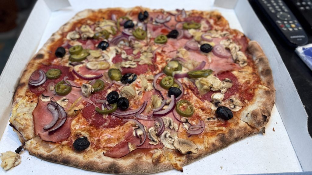 Abends haben wir uns beim Platzrestaurant eine „Pizza Contutto“ geholt: